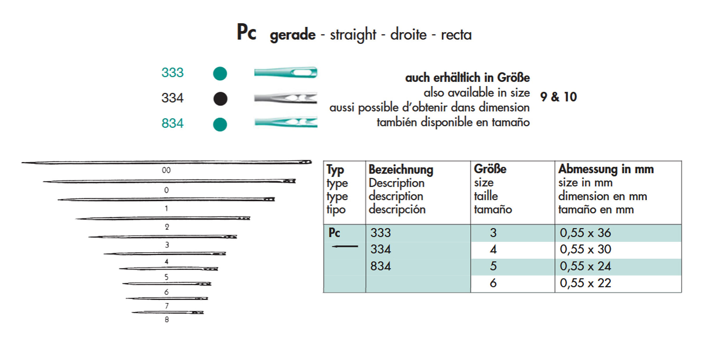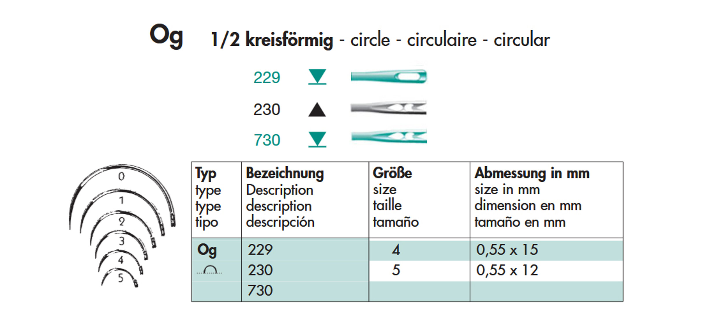 Eine Abweichung von diesen Abmessungen kann eventuell zu einer Beschädigung des Nadelöhres durch stärkeres Nahtmaterial führen.