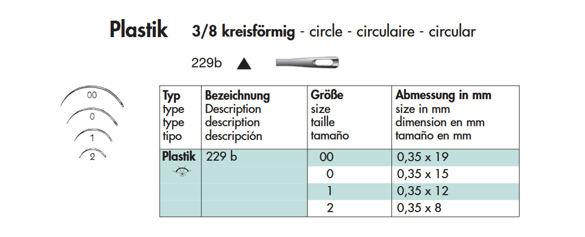 Die Verwendung von um eine Stufe dünnerem Nahtmaterial ist generell möglich, jedoch sind ACUFIRM Federöhrnadeln nicht für Nahtmaterial mit einer Stärke von USP 5/0 oder kleiner geeignet.